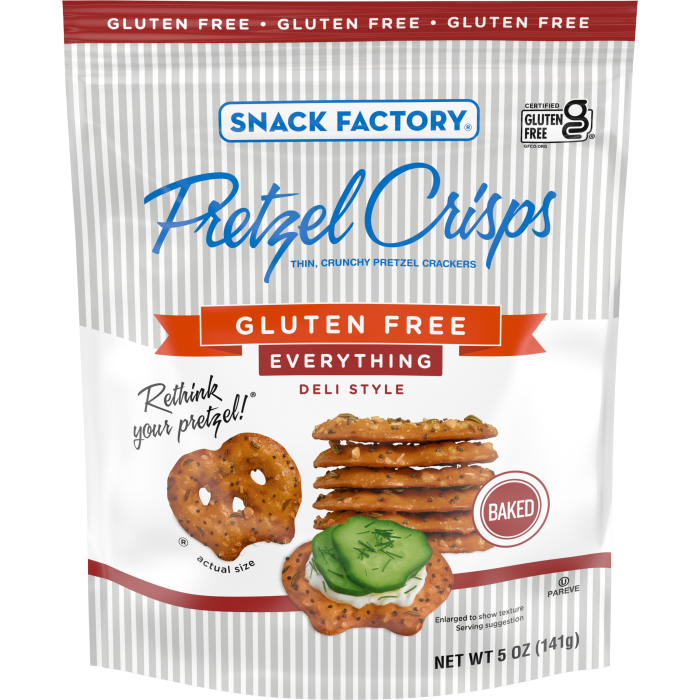 These delicious Gluten Free Everything Pretzel Crisps have it all … except for gluten. Every bite’s sprinkled with poppy seeds, sesame seeds, onion, garlic and salt.