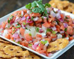 Preheat oven to 350 degrees. Spray a baking dish with nonstick spray. Lay Neufchâtel Cheese on baking dish. Cover with Pico de Gallo. Bake for 25-30 minutes, or until warmed throughout. Serve immediately with Pretzel Crisps®.