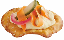Slather the hummus on top of Original Pretzel Crisps. Add any vegetables of your choosing on top for a garnish.